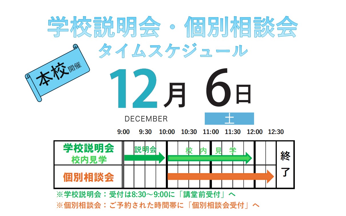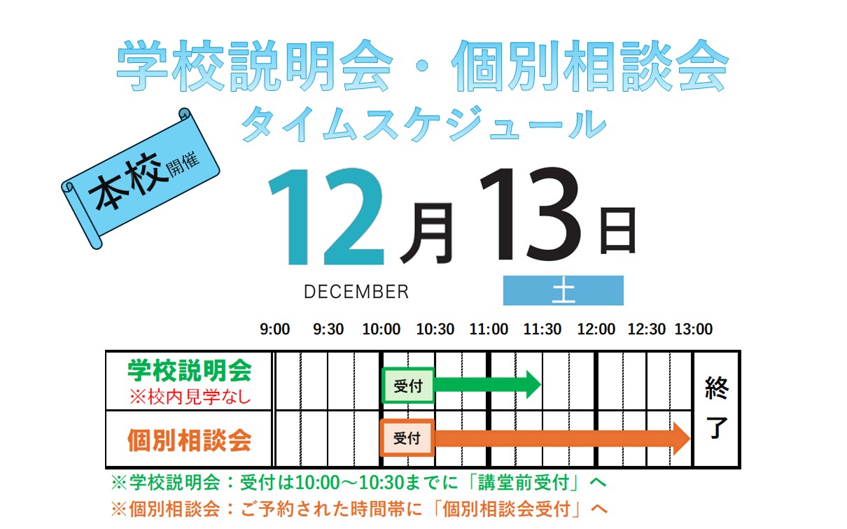 ※学校説明会に参加不要な方は、個別相談会のみご予約だけでも大丈夫です。