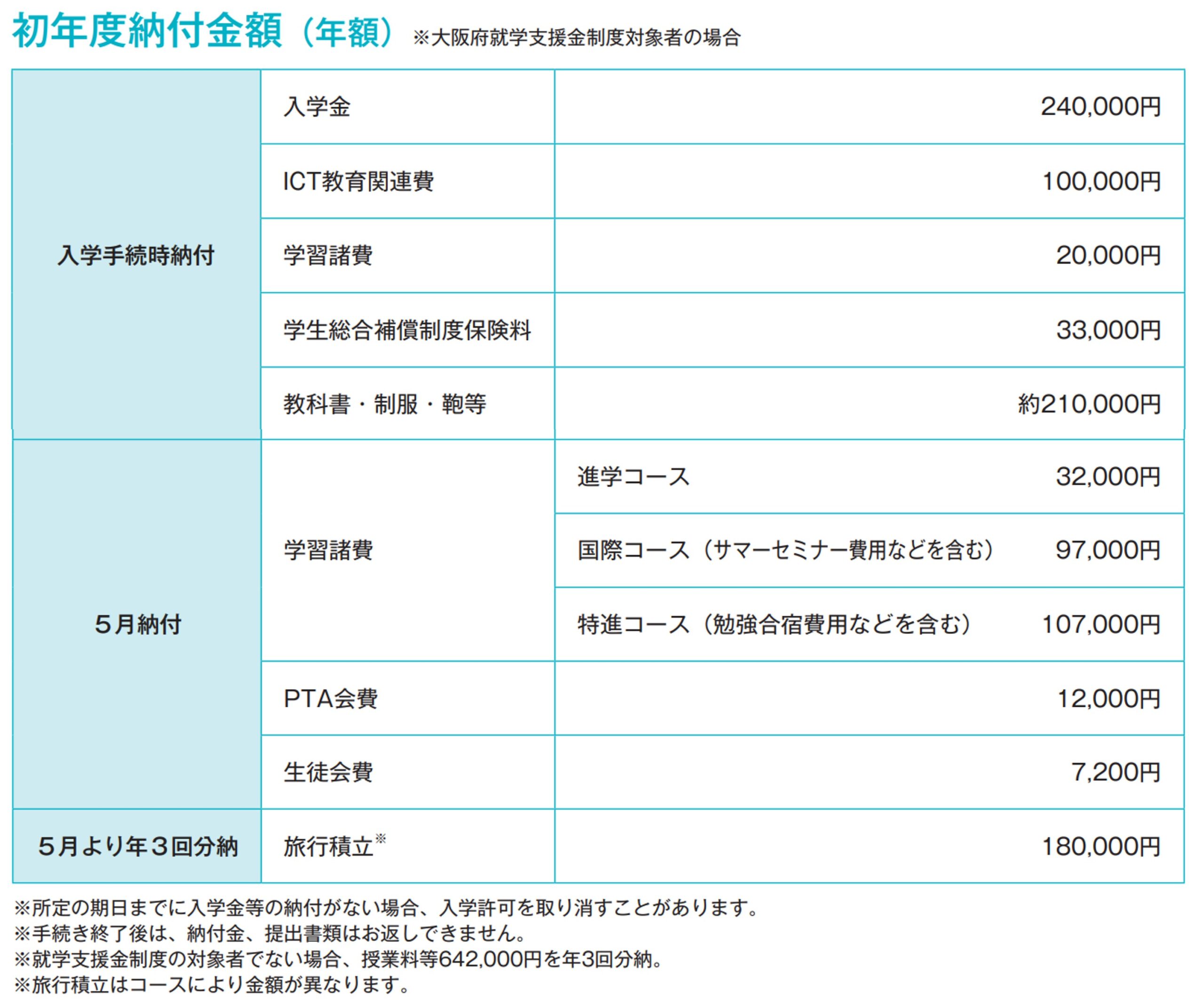 ※学習諸費・旅行積立金はコースにより金額が異なります。
