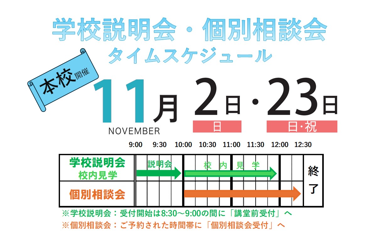 【お知らせ】学校説明会・個別相談会 予約申し込み