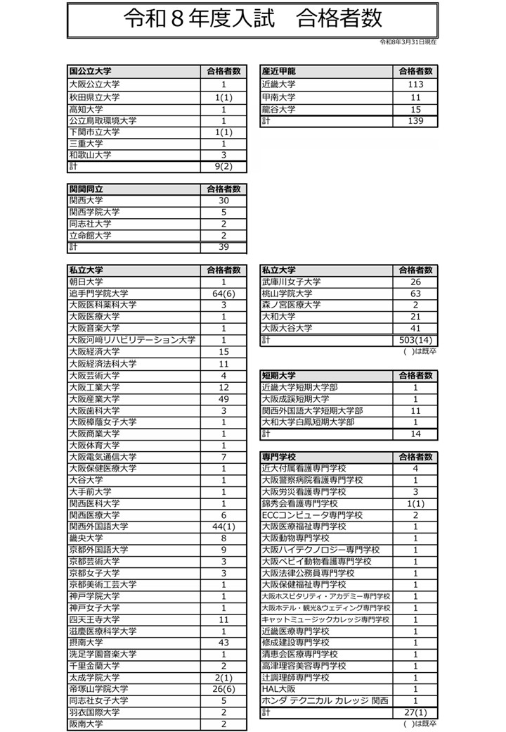 本年度卒業生 合格者数